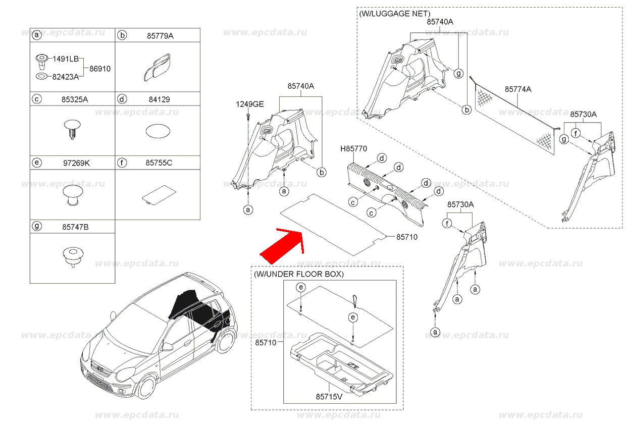 Fond de coffre pour -Kia Picanto de 2008 à 2011 Pièce neuve d’origine